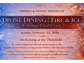 Fire & Ice Divine Dining is an intimate ritual dinner honoring the threshold between winter and spring. Through warming and cooling courses, reflection, and intentional gathering, we explore what is ready to thaw, ignite, and be called forward.